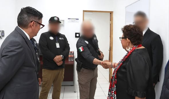 Acompañaron a la titular de la FGR, David Boone de la Garza, Fiscal Especializado de Control Regional; Ramón Ernesto Badillo Aguilar, Fiscal Federal en el Estado de Coahuila, y José Luis Zambrano Campos, Coordinador Regional de la Zona Noreste de la Agencia de Investigación Criminal, entre otros servidores públicos de la FGR.