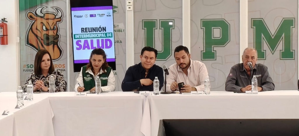 La alcaldesa Sari Pérez Cantú, participó en la reunión regional de salud celebrada en la Universidad Politécnica Monclova-Frontera, donde se contó con la presencia del Secretario de Salud del Estado, Eliud Aguirre Vázquez, así como autoridades de las Jurisdicciones Sanitarias 04 y 08 y alcaldes de la Región Centro. En este encuentro se revisaron los indicadores epidemiológicos más recientes y se fortaleció la coordinación interinstitucional para hacer frente a los principales retos en materia de salud pública.