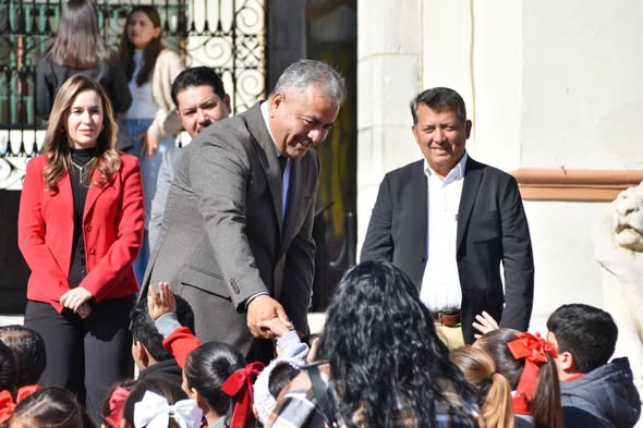 En el marco del Día de la Bandera, el Gobierno Municipal de Cuatro Ciénegas, en coordinación con la Junta Patriótica y la Escuela Primaria Benito Juárez, llevó a cabo un significativo evento cívico con el objetivo de rendir honor a nuestro lábaro patrio y fortalecer el respeto por los símbolos nacionales que dan identidad y sentido de pertenencia al pueblo mexicano.
